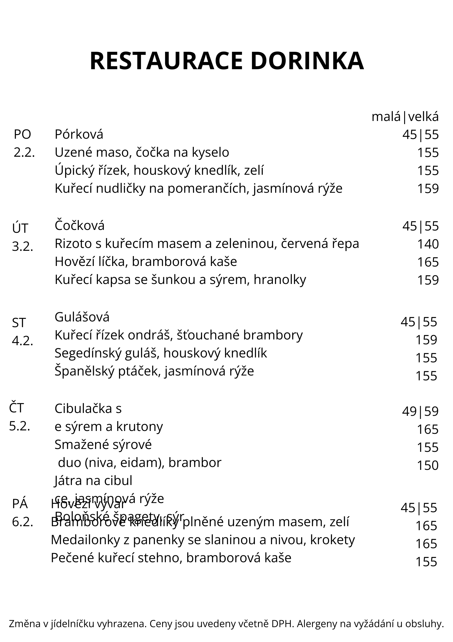 Týdenní menu 2.2.-6.2.